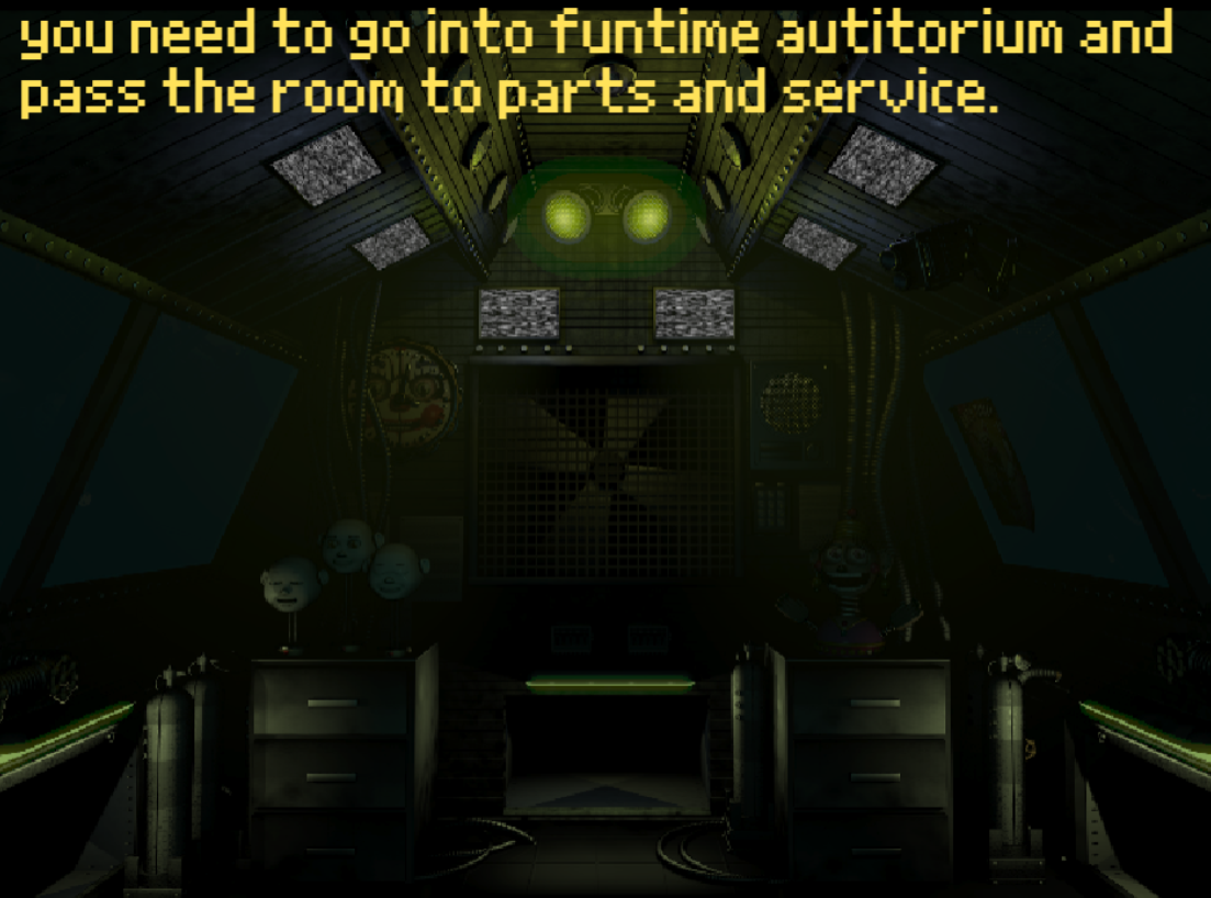 (THIS GAME IS NOT CONNECTED TO THE PREVIOUS GAME OR TO FNAF SISTER LOCATION) You come to Circus Baby's Pizza World for some work to be done in the parts and service room. Your good friend, William Geizer worked there last year and told you what to do. But uh oh! The animatronics are alive! Try to survive until 6am when William gets you.